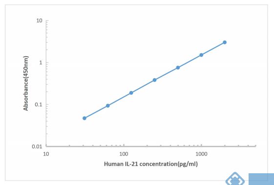 本图仅供参考,应以当次试验标准品绘制的标准曲线计算人 IL-21 的样本含量。