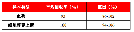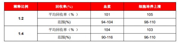 在选取的健康人血浆、细胞培养上清中加入 3 个不同浓度水平的人 IL-21,计算回收率。
